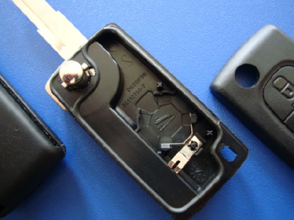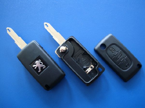 Ключ Peugeot выкидной (корпус) 3 кнопки, с креплением для батарейки на корпусе