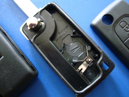 Выкидной ключ Citroen (корпус) 2 кнопки, с креплением батарейки на корпусе ключа, лезвие HU83T