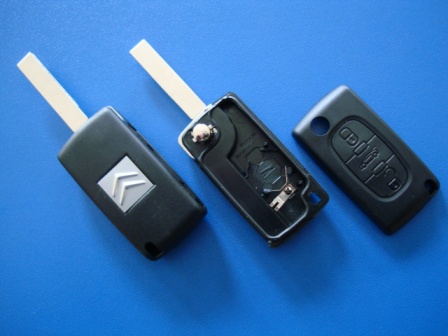 Выкидной ключ Citroen (корпус) 3 кнопки, с креплением батарейки на корпусе ключа, лезвие HU83T