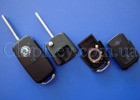 Ключ Skoda выкидной (корпус) 2 кнопки, лезвие hu66