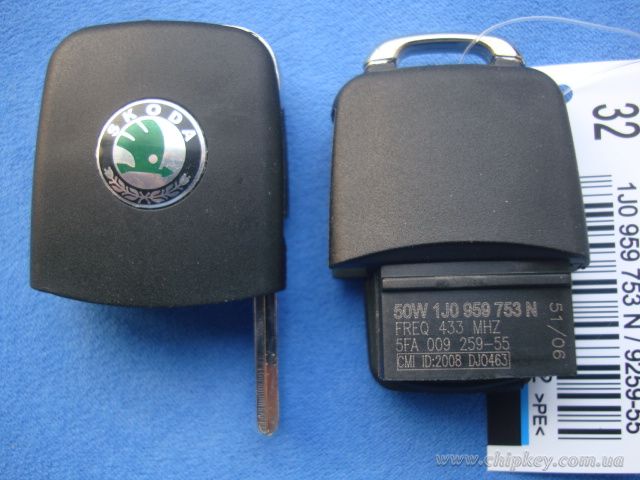 Ключ Skoda выкидной 2 кнопки с платой 1JO 959 753 N 433 Mhz, с id48 чипом
