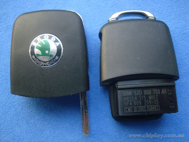 Ключ Skoda выкидной 3 кнопки с платой 1JO 959 753 AH 433 Mhz, с id48 чипом