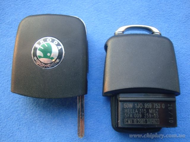 Ключ Skoda выкидной 3 кнопки с платой 1JO 959 753 G 433 Mhz, с id48 чипом