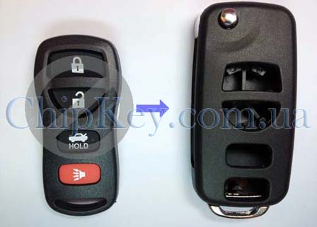 NISSAN MAXIMA выкидной ключ (корпус) 3 - кнопки + 1 кнопка(Panic)