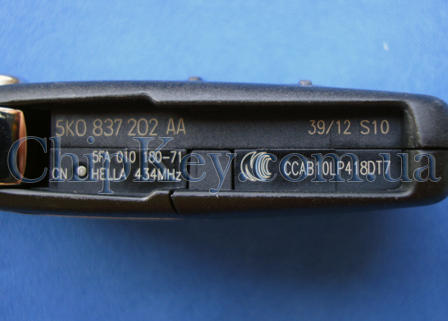 Ключ Volkswagen 5K0 837 202 AA выкидной 3 кнопки, с чипом 48:A1, 434Mhz original (Артикул: F5K0837202AA)