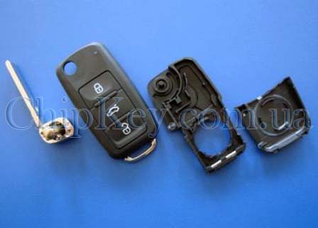 Ключ Volkswagen с 2010 выкидной (корпус) 3 кнопки, лезвие hu66 (Артикул: F211VS)