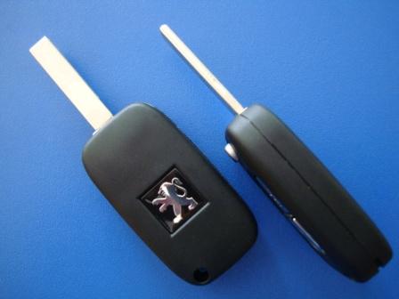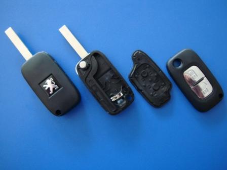 Выкидной ключ Peugeot 107, 207, 307, 308, 408, 2008 (корпус) 2 кнопки, лезвие HU83T, с креплением для батарейки (Артикул: F406F)