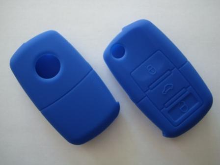 Volkswagen Skoda Seat силиконовый чехол под выкидной ключ 3 кнопки, синий (Артикул: 362BL)
