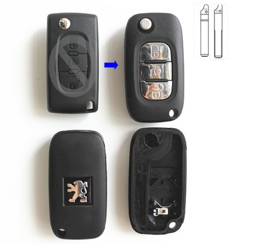PEUGEOT 107, 207, 307, 308, 408, 2008 выкидной ключ (корпус) 3 - кнопки, лезвие VA2, с креплением для батарейки