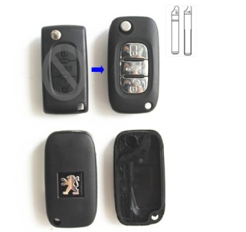 PEUGEOT 107, 207, 307, 308, 408, 2008 выкидной ключ (корпус) 3 - кнопки, лезвие HU83T, без крепления для батарейки