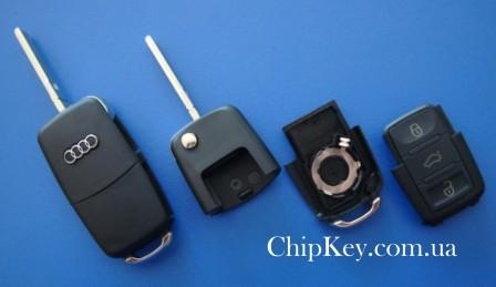 Ключ Audi выкидной (корпус) 3 кнопки, лезвие hu66