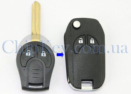 Ключ Nissan Cube, Micra, Note, Juke, Qashqai выкидной (корпус) 2 кнопки (Артикул: F429)