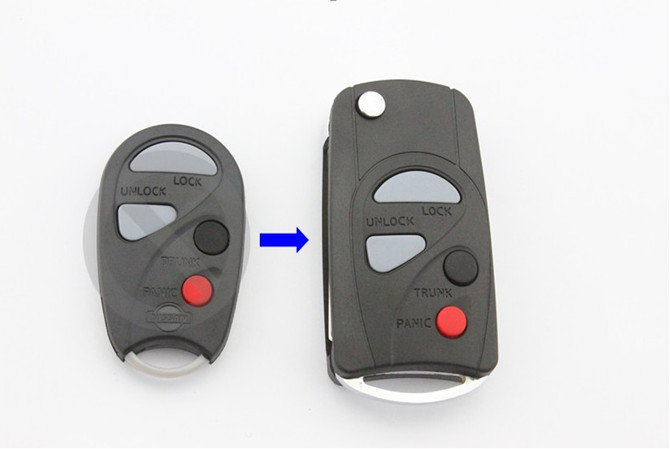NISSAN выкидной ключ (корпус) 3 - кнопки + 1 кнопка (Panic) (Артикул: F424)