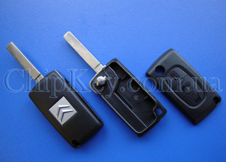 Ключ выкидной Citroën (корпус) 3 кнопки, без крепления батарейки на корпусе, лезвие va2