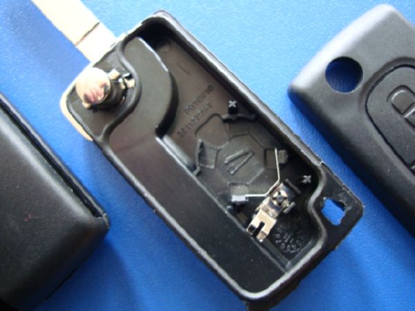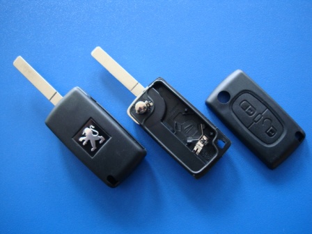 Ключ Peugeot 107, 207, 307, 308, 408, 2008 выкидной (корпус) 2 кнопки, лезвие VA2, с креплением для батарейки (Артикул: F279CB)