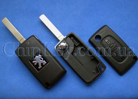 Выкидной ключ Peugeot (корпус) 3 кнопки, лезвие VA2, без крепления для батарейки