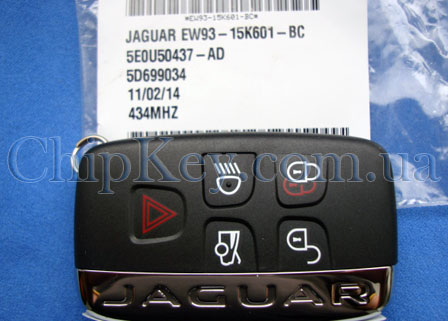 Ключ Jaguar XF/XK Smart Key 5 кнопок c 2010-, id47(pcf7953), 434Mhz, Original C2D43576
