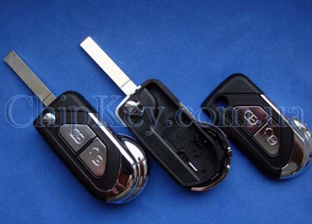 Peugeot выкидной ключ (корпус) 2 - кнопки, лезвие VA2, с креплением для батарейки (Артикул: F279CBL)