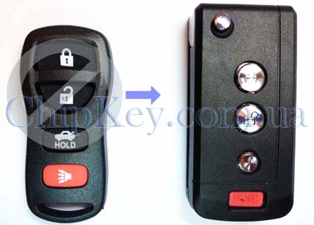 NISSAN выкидной ключ (корпус) 3 - кнопки + 1 кнопка(Panic)