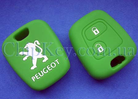 Чехол Peugeot силиконовый 2 кнопки, зеленый (Артикул: 76G)