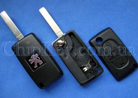 Peugeot выкидной ключ (корпус) 4 кнопки, лезвие VA2, с креплением для батарейки