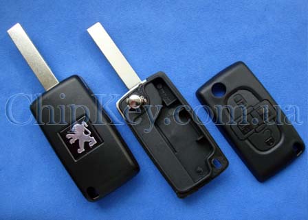 Peugeot выкидной ключ (корпус) 4 кнопки, лезвие HU83T, без крепления для батарейки