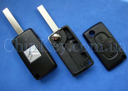 Citroen выкидной ключ (корпус) 4 кнопки, лезвие HU83T, без крепления батарейки (Артикул: F39XCNB)