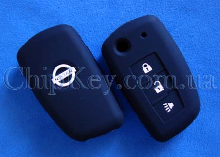 Силиконовый чехол Nissan на выкидной ключ 3 кнопки, черный (Артикул: 506)