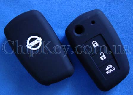 Силиконовый чехол Nissan на выкидной ключ 3 кнопки, черный (Артикул: 314)