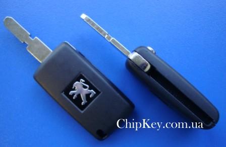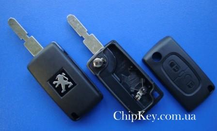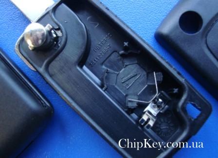Ключ выкидной Peugeot (корпус) 2 кнопки, крепление батарейки на корпусе