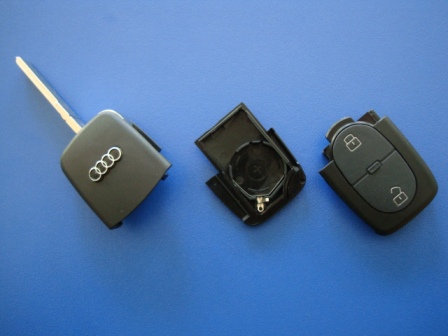 Ключ Audi выкидной (корпус) 2 кнопки 1 кнопка, лезвие hu66, под батарейку 2032 (Артикул: F38920)