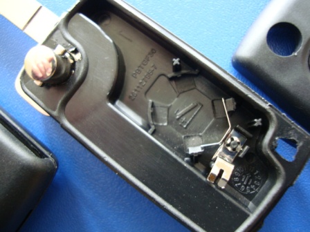 Ключ Peugeot выкидной (корпус) 2 кнопки, лезвие hu83t, с креплением для батарейки
