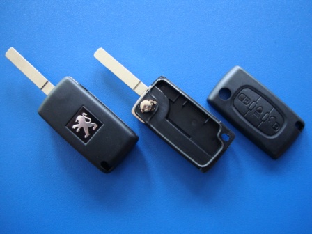 Ключ Peugeot выкидной (корпус) 3 кнопки, лезвие va2, без крепления для батарейки