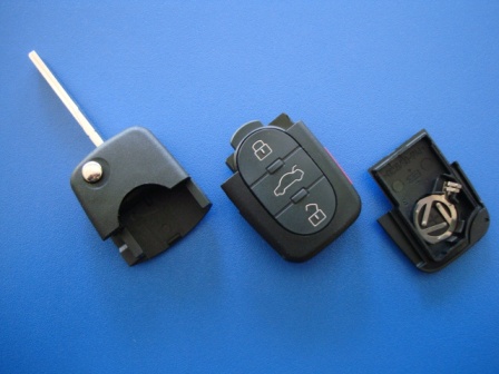 Ключ Audi выкидной (корпус) 3 кнопки 1 кнопка (Panic), лезвие HU66 под батарейки 1616