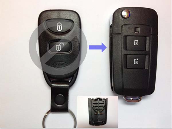 Ключ Hyundai Santa Fe выкидной (корпус) 2 кнопки, с креплением батарейки на корпусе (Артикул: F100)